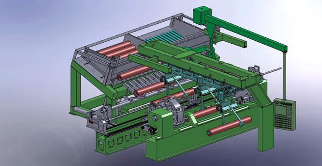 雙端旋轉(zhuǎn)式六工位數(shù)控托輥壓裝中心由3部分組成:料倉(cāng)、輥皮和托輥軸裝配機(jī)、軸承/密封等6工位旋轉(zhuǎn)壓裝部。工件在各工位之間的流轉(zhuǎn),由平移機(jī)械手轉(zhuǎn)運(yùn)。旋轉(zhuǎn)式六工位數(shù)控壓裝機(jī)構(gòu),巧妙解決了壓裝內(nèi)、外密封和軸承,解決了自動(dòng)注脂,特別是解決了難以自動(dòng)壓裝的軸用彈性擋圈。自動(dòng)穿軸裝配機(jī),采用自動(dòng)穿軸方法(專利)代替手工穿軸,節(jié)約人工、提高功效8倍,實(shí)現(xiàn)了自動(dòng)化。由1人操控,班產(chǎn)量≥500支。