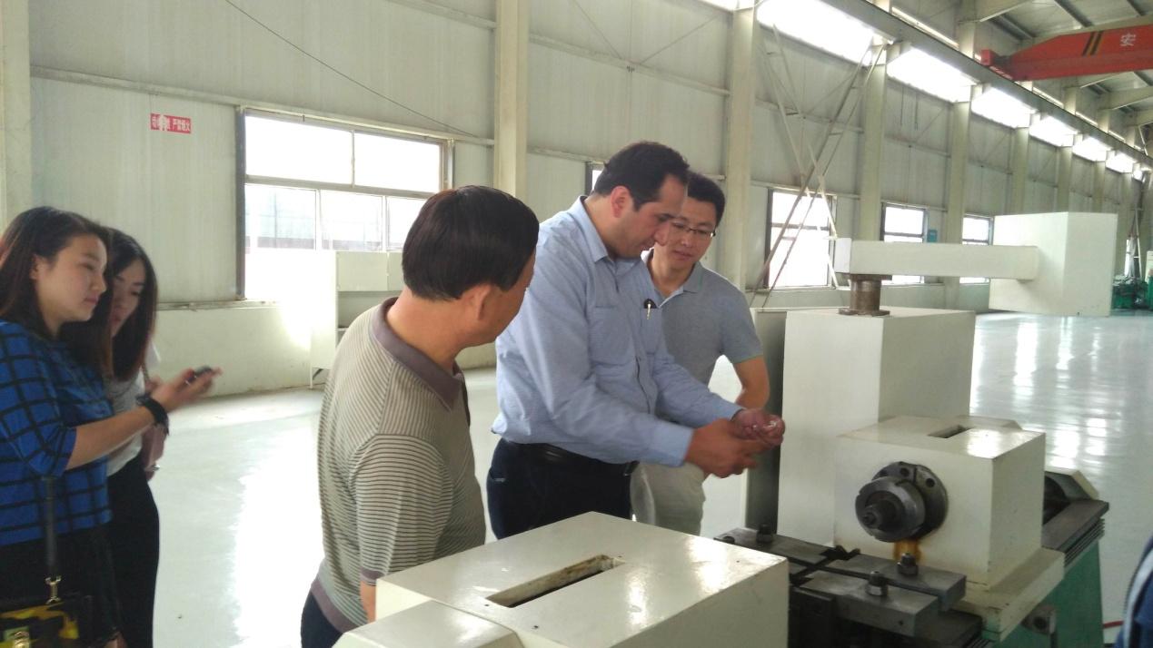 伊朗客商參觀我公司SGY-159Ⅰ數(shù)控托輥壓裝機床